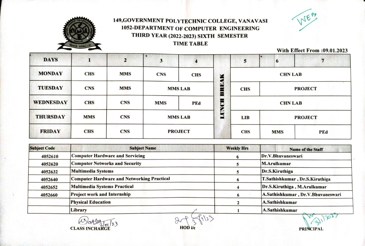 Time table 3Rd year